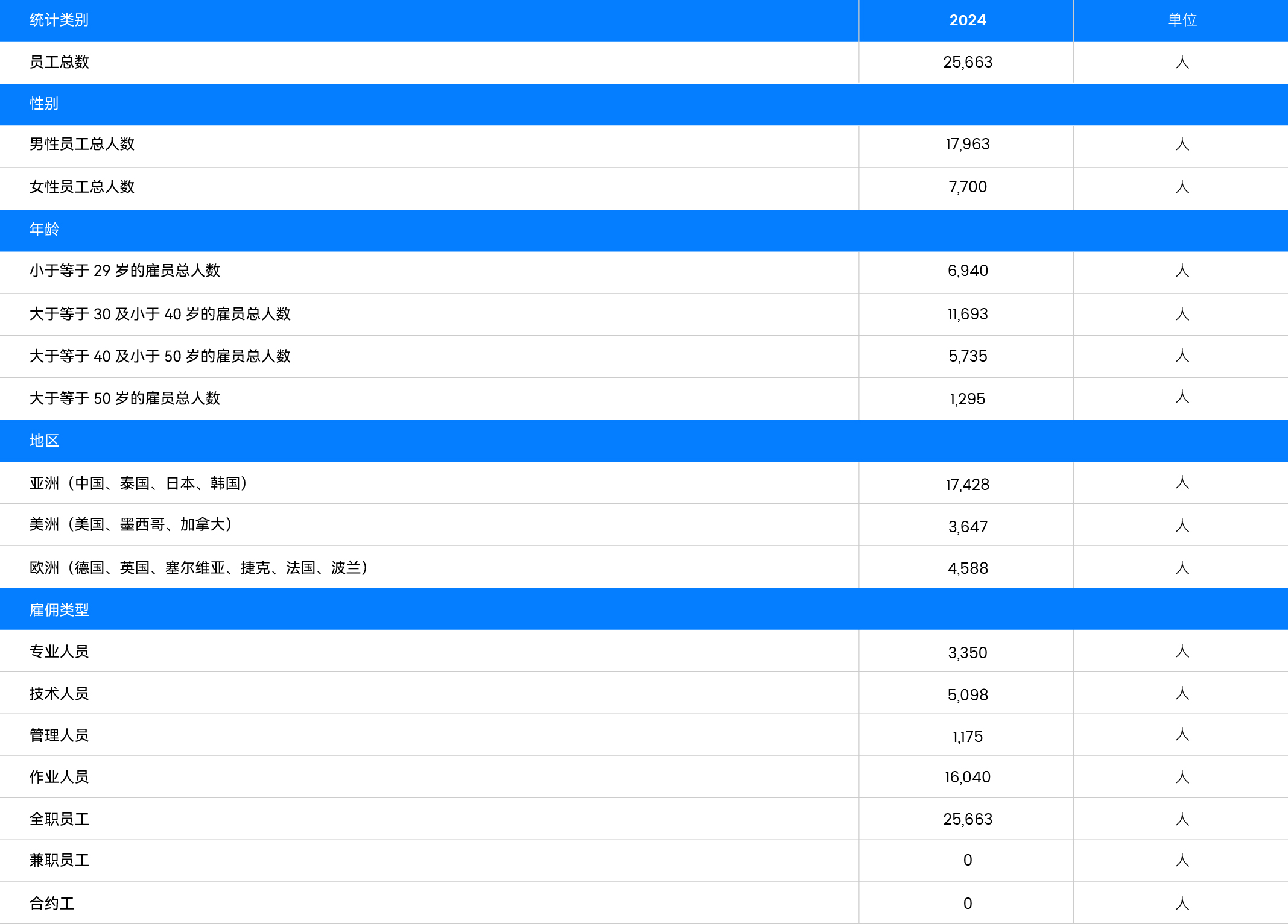 全球員工比例及性別構(gòu)成