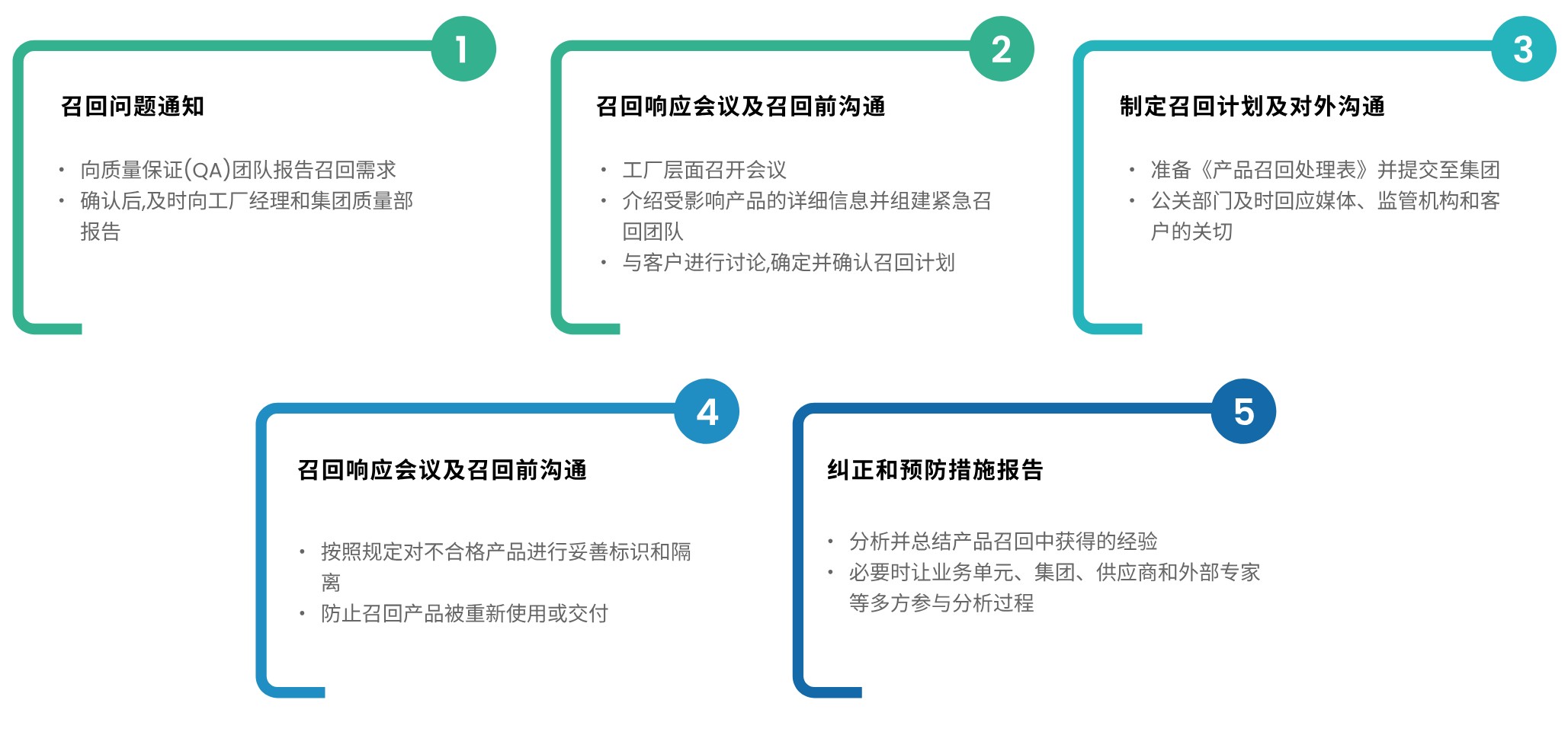 2023年,我們發(fā)布了《召回管理指南》,規(guī)范和指導及時召回缺陷產(chǎn)品。對于有缺陷或質(zhì)量問題的產(chǎn)品,我們將提供免費處理或召回,糾正缺陷,或?qū)Ξa(chǎn)品進行處置,以消除對客戶的負面影響或減少產(chǎn)品造成的危害程度。并針對類似問題組織全集團范圍的檢查。